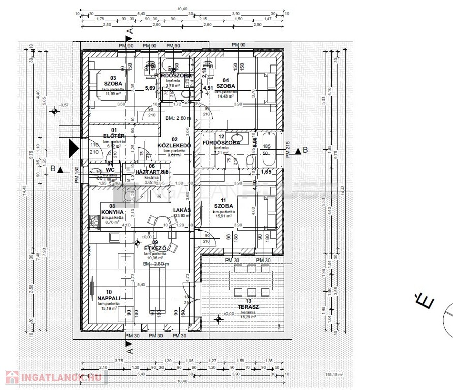 kerül kialakításra. Az épületek 1 szintesek, nem alá pincézettek. Az épület szeglemezes tetővel készül, antracit színű betoncseréppel.