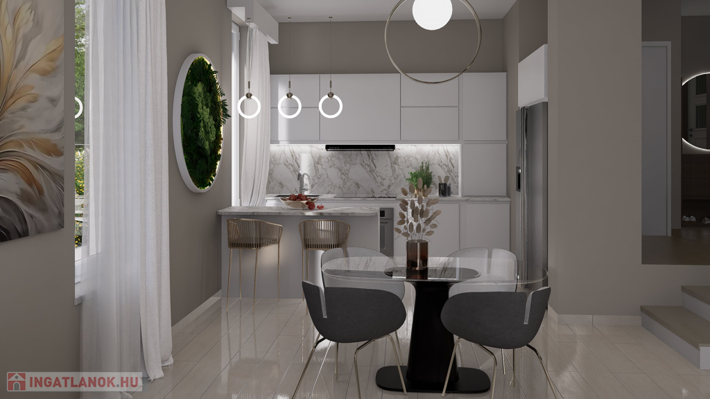 Székesfehérváron, az Öreghegyen eladó egy 2025/26-ban épülő, kétszintes, 163 m2-es modern családi ház. A ház földszintje nappali + 1 szobás kialakítású, étkező-konyhával, tárolóval, vendég WC-vel és előszobával. A szobához kapcsolódik egy gardrób szoba és egy privát fürdőszoba is. A nappalihoz egy terasz kapcsolódik. Az emeleti részen három szoba, fürdőszoba, előtér és külön WC található. Itt a két szobához szintén terasz kapcsolódik. A parkolásról egy 19,8 m2-es garázs és egy kültéri beálló is gondoskodik.
