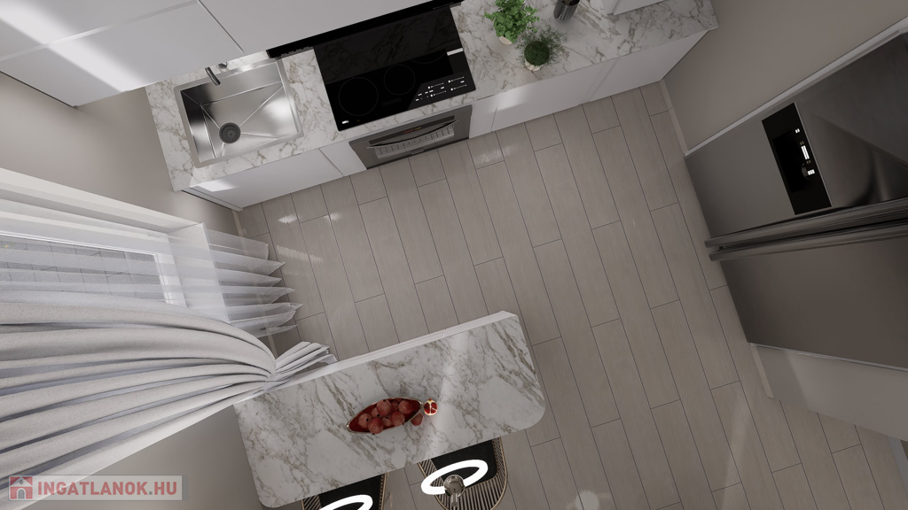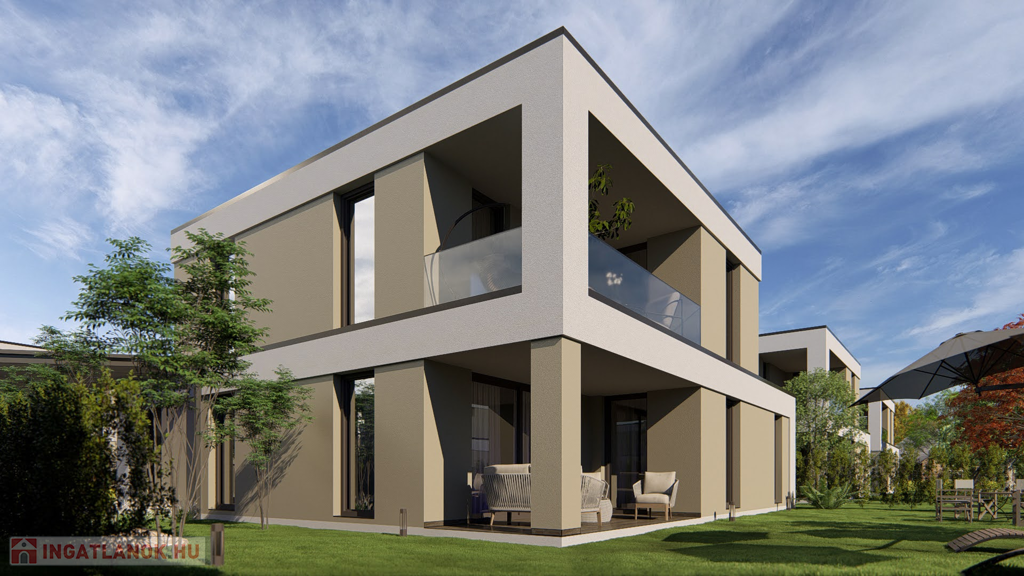 Székesfehérváron, az Öreghegyen eladó egy 2025/26-ban épülő, kétszintes, 163 m2-es modern családi ház. A ház földszintje nappali + 1 szobás kialakítású, étkező-konyhával, tárolóval, vendég WC-vel és előszobával. A szobához kapcsolódik egy gardrób szoba és egy privát fürdőszoba is. A nappalihoz egy terasz kapcsolódik. Az emeleti részen három szoba, fürdőszoba, előtér és külön WC található. Itt a két szobához szintén terasz kapcsolódik. A parkolásról egy 19,8 m2-es garázs és egy kültéri beálló is gondoskodik.